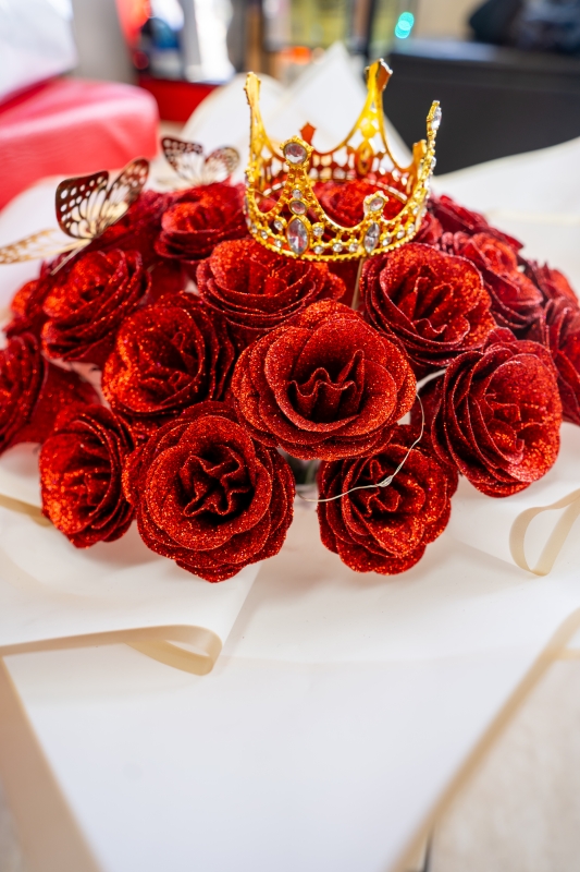 Florería & Decoración Cristal, specializes in custom floral arrangements for all occasions, including weddings, church decorations, fifteenth birthday celebrations, funeral wreaths, crosses, centerpieces, and arrangements combined with balloons, stuffed animals, and chocolates. They also create decorative backdrops and balloon arches, which are ideal for enhancing any event. Owner María Martínez is a passionate entrepreneur from Mexico with over 10 years of experience in the floral and event decoration industry. María has turned her creative talent into a thriving business that brings color and elegance to every celebration. As part of their services, they also offer event solutions with their furniture rental service, which includes tables, chairs, tents, tablecloths, and children's entertainment such as trampolines. They offer home delivery and in-store pickup for your convenience. With a creative vision and a solid track record, María continues to serve the community by providing that personal touch that makes every occasion unforgettable.